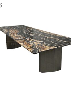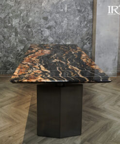 Bàn ăn 10 ghế mà IRIS đang kinh doanh sử dụng mặt bàn làm từ đá cẩm thạch Ý và đá Ceramic cao cấp. Mỗi phiến đá đều có đường vân và độ loang màu riêng biệt, tạo nên vẻ đẹp độc đáo, ấn tượng cho từng bộ bàn ăn.