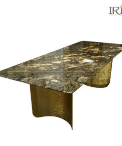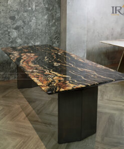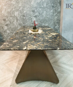 Khung bàn sử dụng phần khung kim loại sơn tĩnh điện hoặc Inox mạ PVD cao cấp giúp tăng độ bền, chống cong vênh, gỉ sét sau thời gian dài sử dụng. Khung chân bàn được thiết kế tạo hình thanh thoát, độc đáo, góp phần làm nổi bật mặt bàn đá và phù hợp với nhiều phong cách nội thất cao cấp như Modern, Minimalism, Classic,..