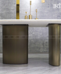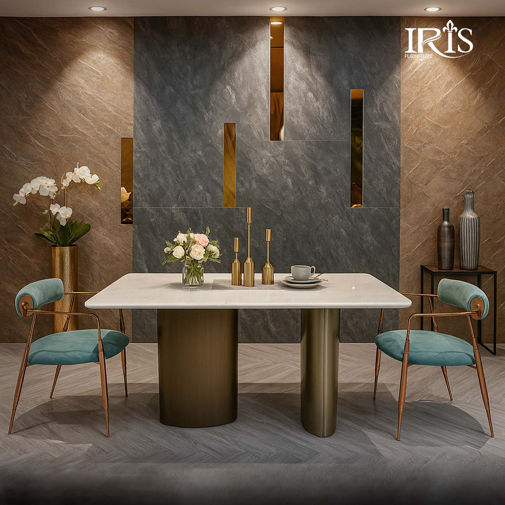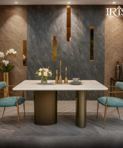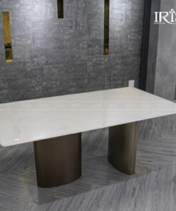 Tham khảo bàn ăn mặt đá bạch ngọc cẩm thạch Bali – Tâm điểm thượng lưu cho biệt thự & Penthouse. Sản phẩm sử dụng chân bàn inox 304 mạ titan kết hợp cùng đá Marble tự nhiên, đảm bảo sự chắc chắn và tính thẩm mỹ cho bàn ăn.