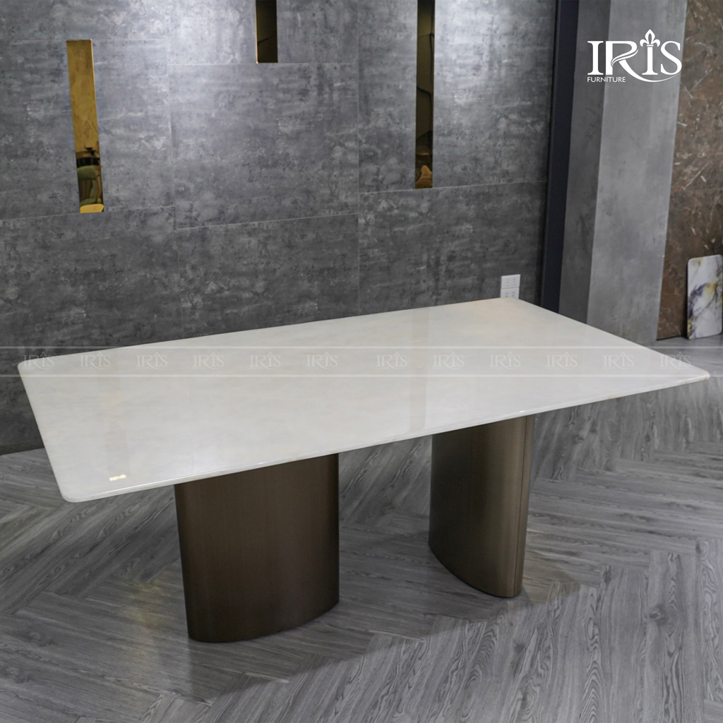 Bàn ăn Bali đang bán tại IRIS sử dụng chất liệu đá cẩm thạch tự nhiên, đây là loại đá được dùng phổ biến trong các dòng nội thất cao cấp. Dưới đây là 5 ưu điểm của bàn ăn mặt đá cẩm thạch Bali: