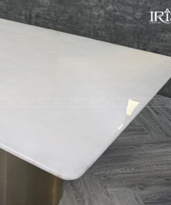 Đặc biệt, bề mặt đá có độ dày 36mm, tạo cảm giác chắc chắn và bền đẹp cho bàn ăn. Sản phẩm có thiết kế hình chữ nhật mang lại sự mềm mại, thanh thoát và tạo cảm giác gần gũi hơn cho không gian ăn uống.