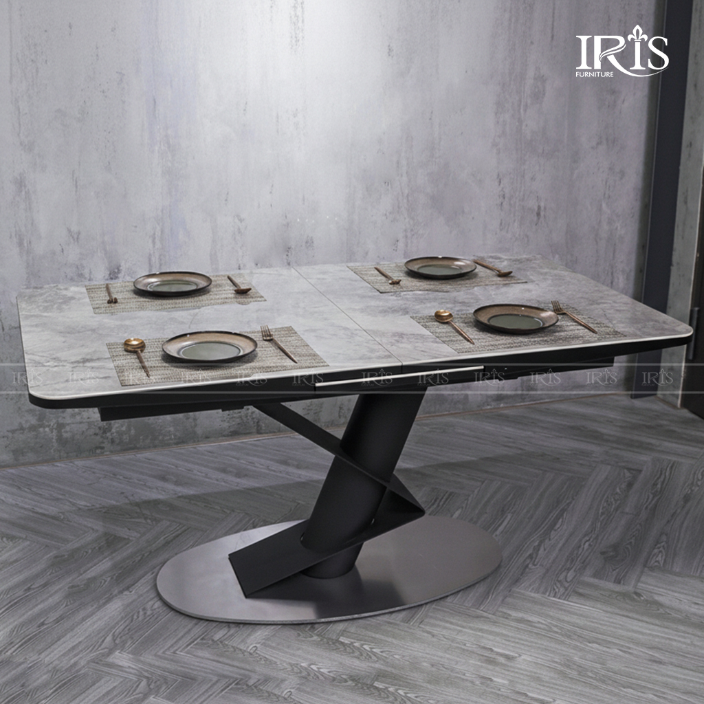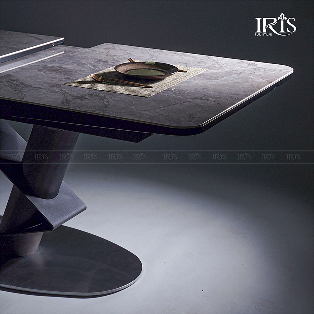 Sự kết hợp giữa mặt đá Ceramic Italy và chân bàn kim khí hoàn thiện tinh xảo đem lại tổng thể sang trọng, vững chắc và đầy tính nghệ thuật.