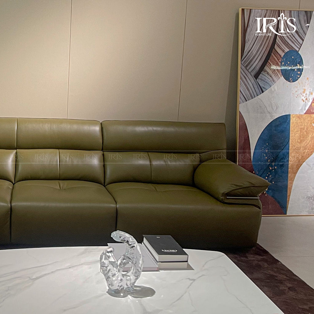 Bộ sofa da cao cấp thiết kế tối giản mà sang trọng cho phòng khách, khung chắc, đệm đàn hồi tốt; đặt showroom được giảm giá nên ưng lắm.